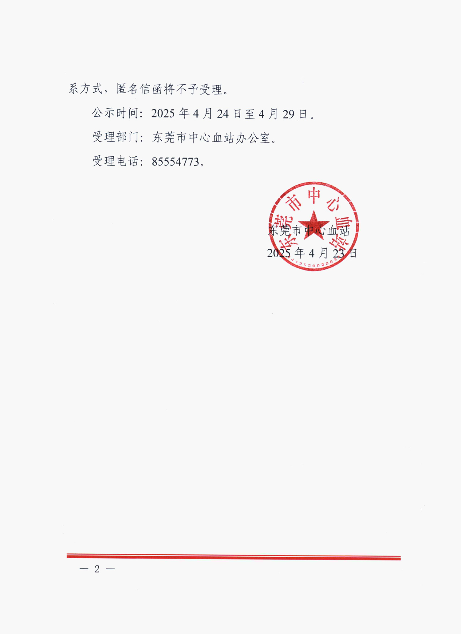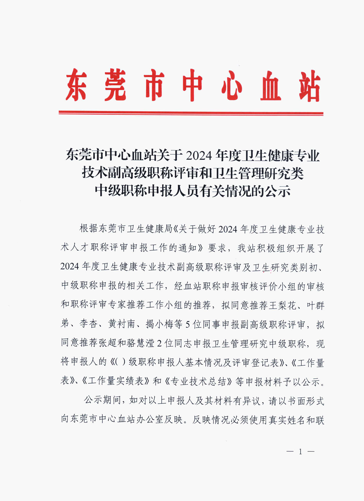 东莞市中心血站关于 2024 年度卫生健康专业技术副高级职称评审