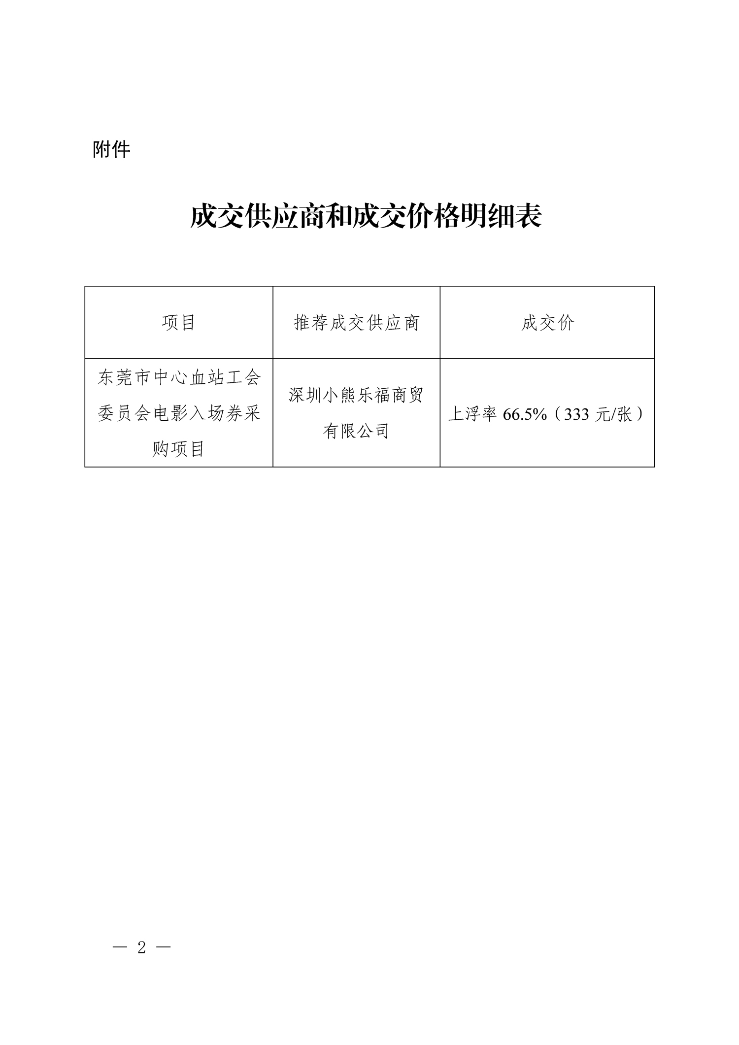 东莞市中心血站工会委员会电影入场券采购项目采购结果公示