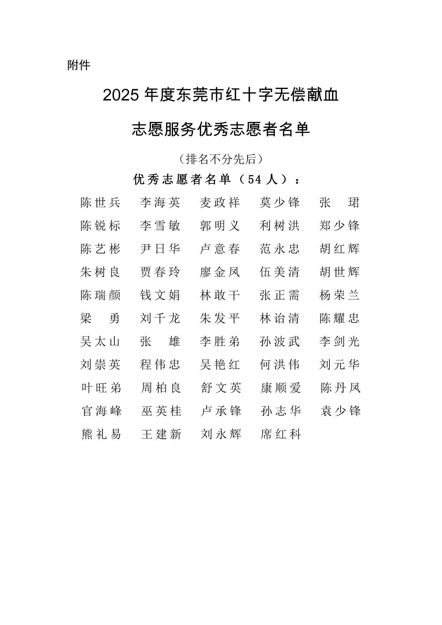 关于东莞市红十字无偿献血志愿服务队2025年度优秀志愿者名单的公示