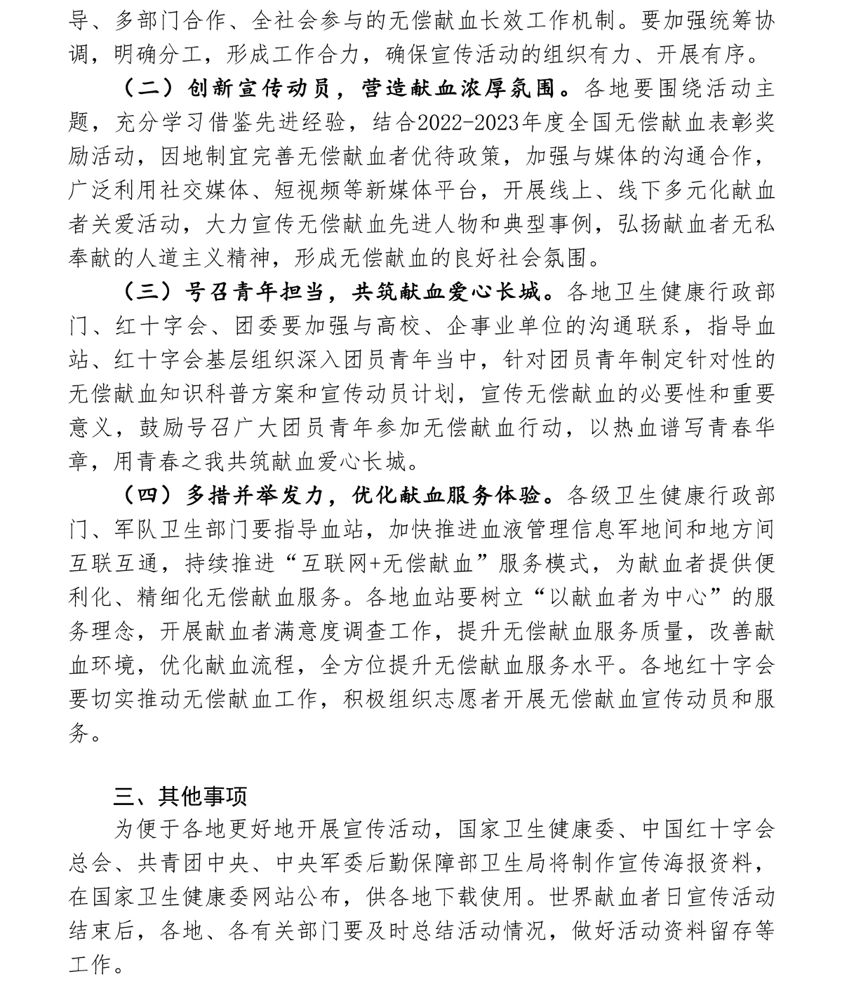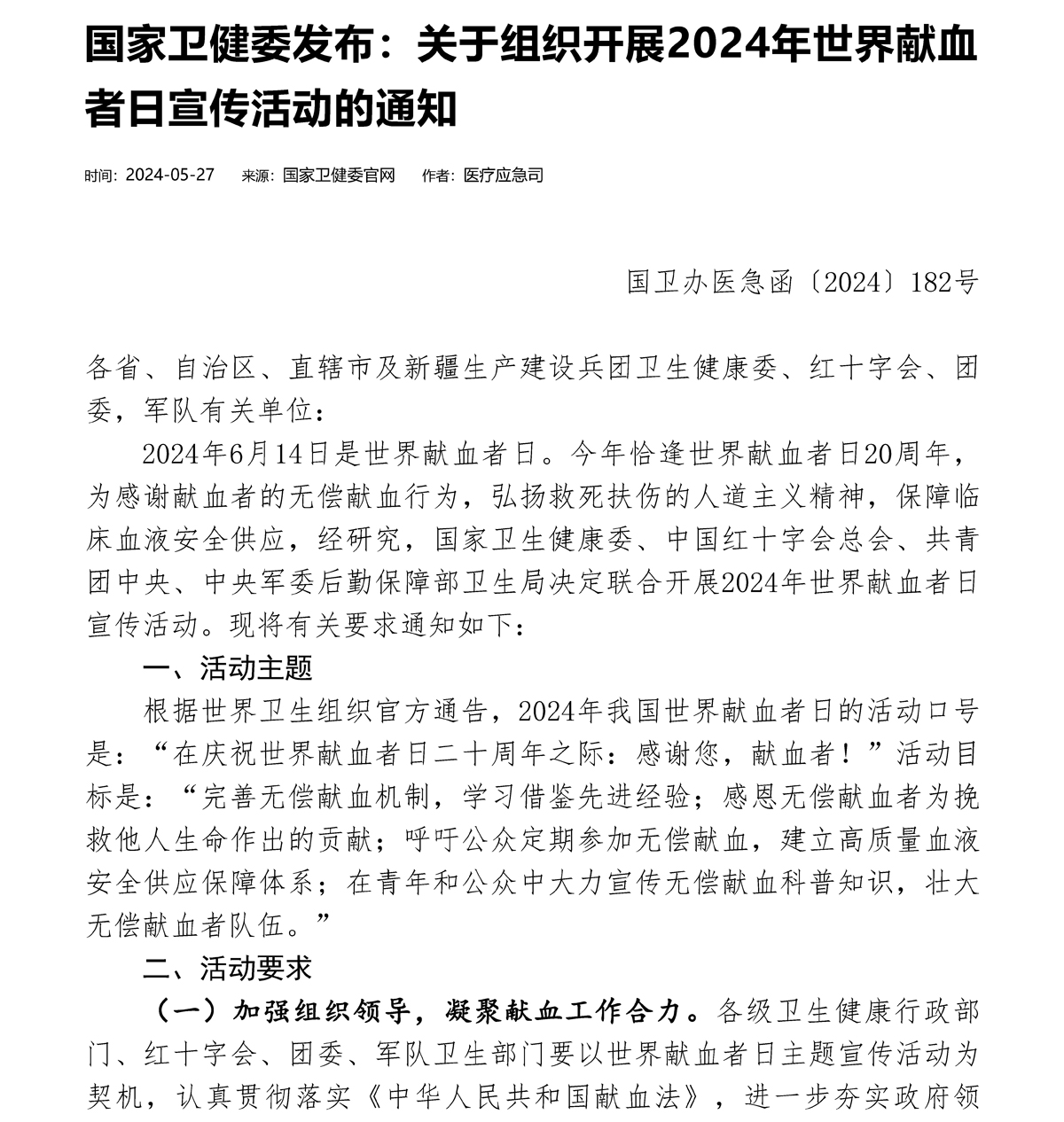 国家卫健委发布:关于组织开展2024年世界献血者日宣传活动的通知-中国输血协会