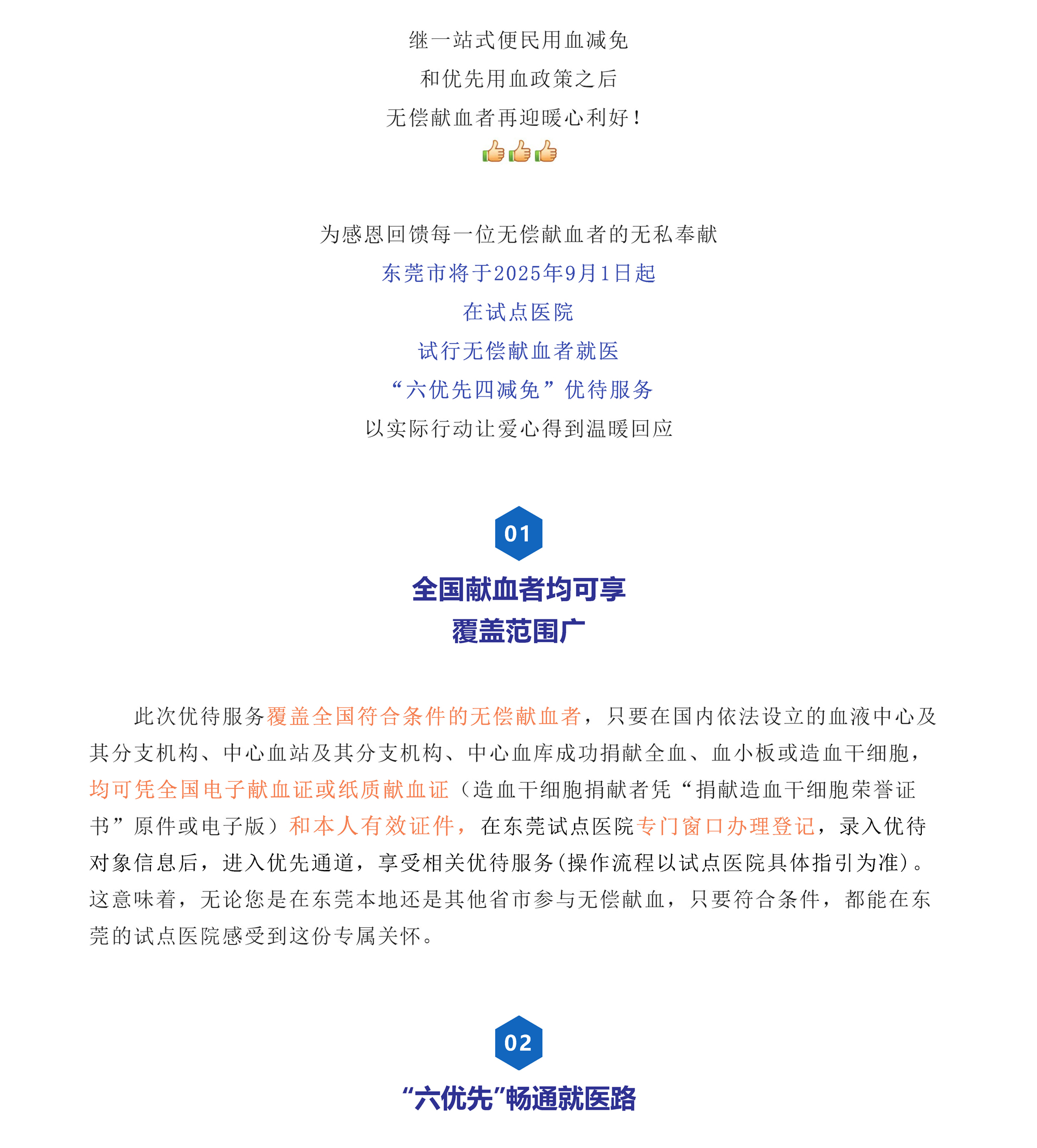 无偿献血者在东莞就医可享“六优先四减免”优待