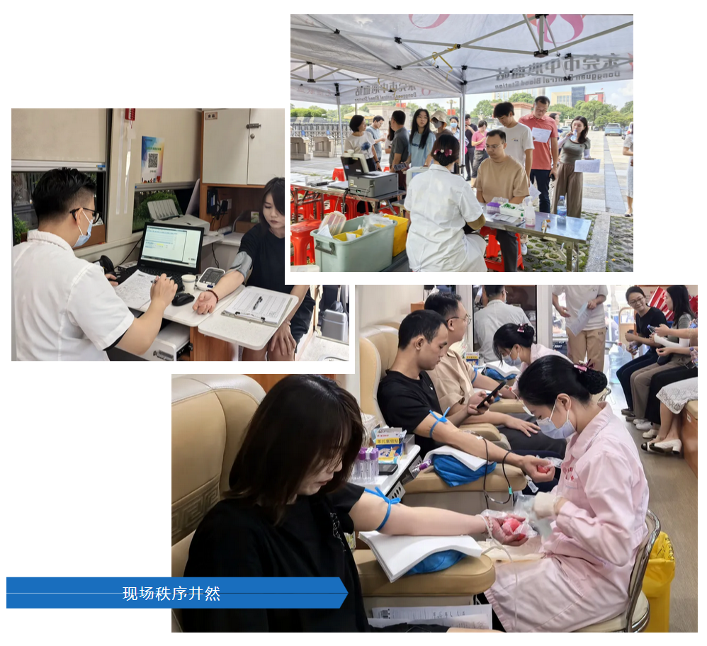 活动现场,爱心涌动。大家在工作人员的指导下有序地进行填表、初筛、体检、采血......一股股殷红的血液缓缓流入储血袋,宛如传递温暖和希望的红色纽带。