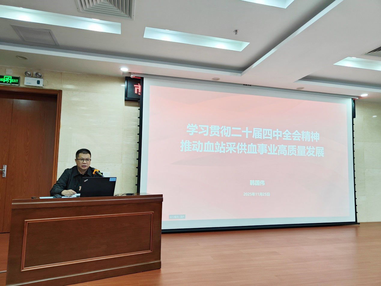 会上,党总支书记韩国伟以《学习贯彻二十届四中全会精神 推动采供血事业高质量发展》为题作了专题辅导报告。