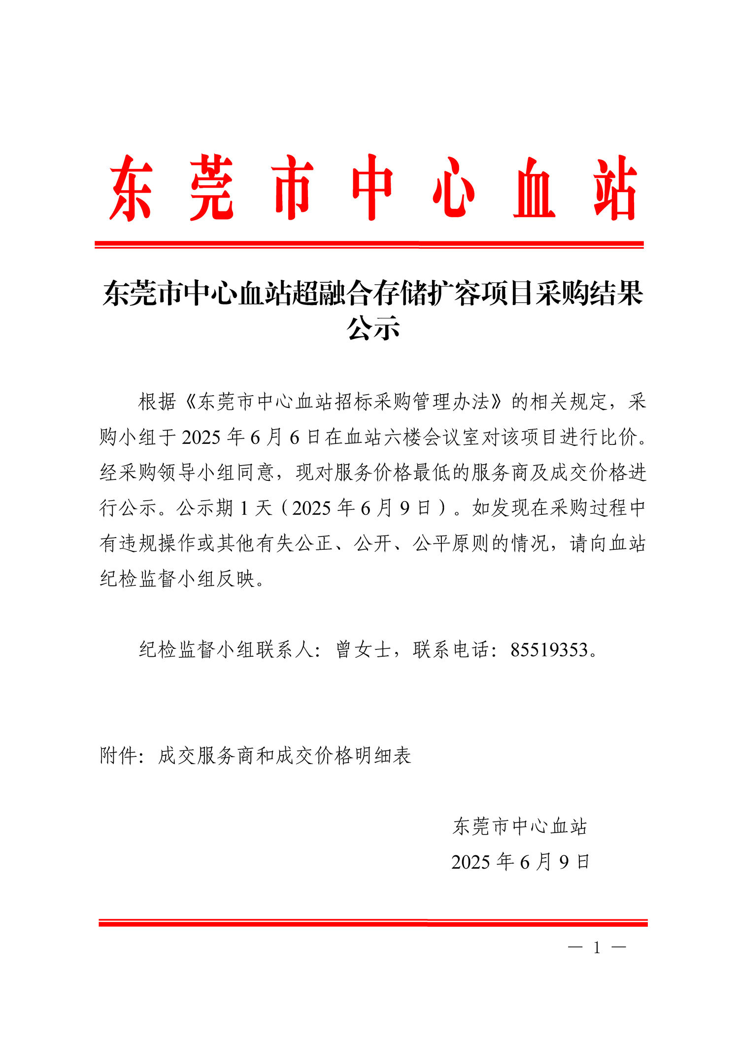 东莞市中心血站超融合存储扩容项目采购结果公示