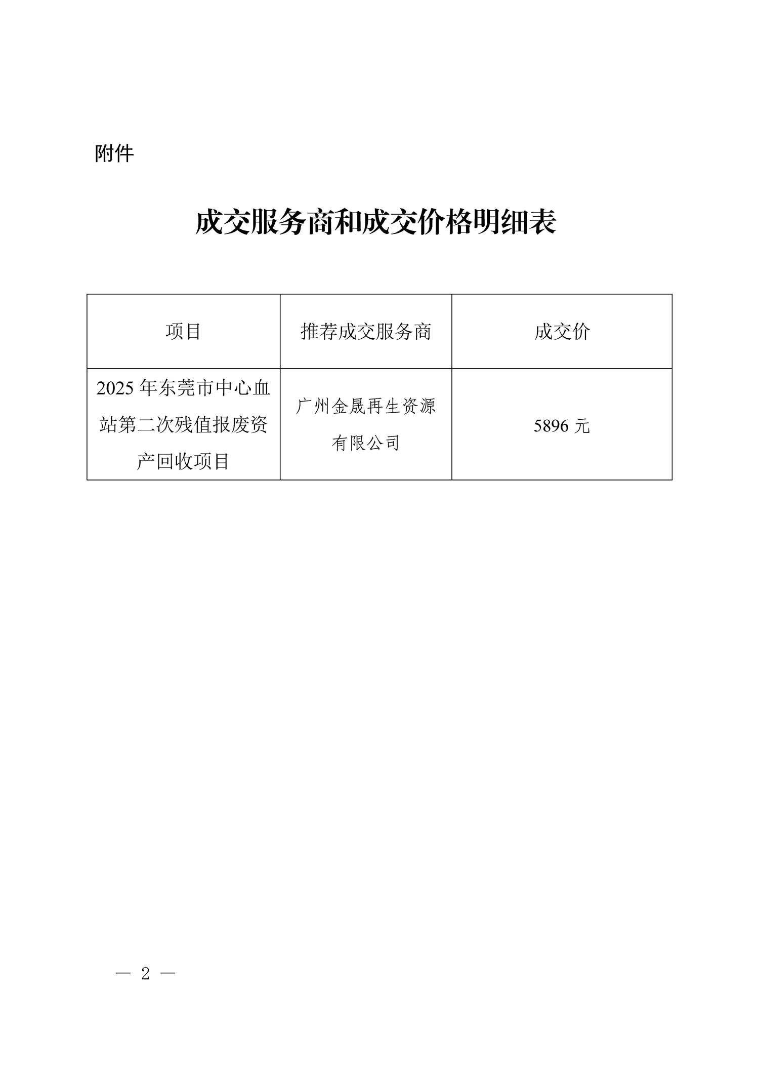 2025年东莞市中心血站第二次残值报废资产回收项目采购结果公示