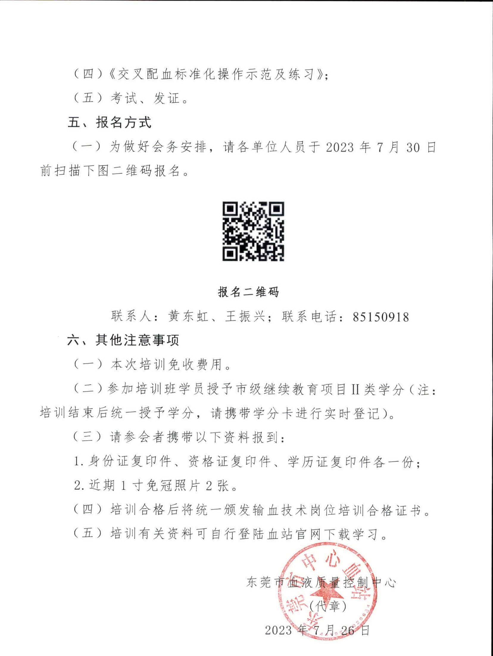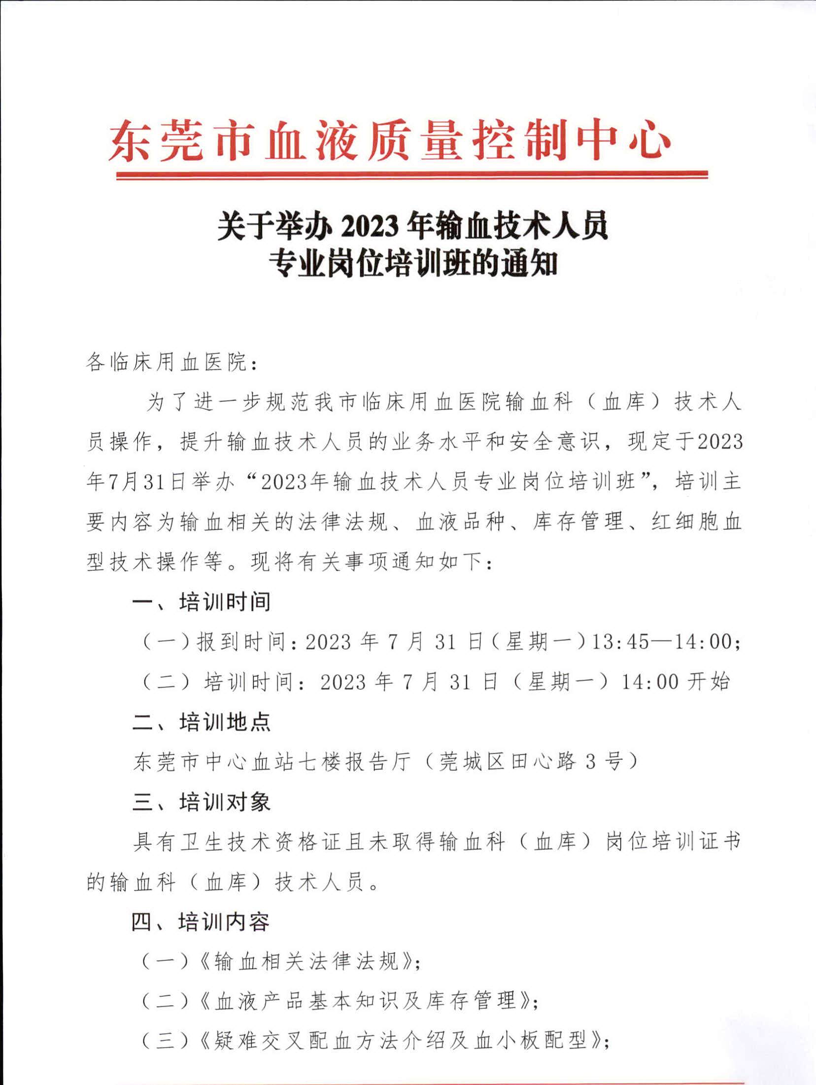 关于举办2023年全市输血技术人员专业岗位培训班的通知