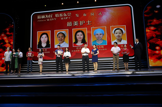 经过3个多月的发动、提名、评选,2016年6月16日,2016东莞市“最美医生”“最美护士”评选活动进入最后的发布阶段。发布仪式上,获奖的20名“最美”医护悉数亮相,接受这份荣誉,他们来自市人民医院等18家医疗卫生单位,覆盖了内科、外科等多个学科领域,不少为所在医院的学科带头人和骨干成员。