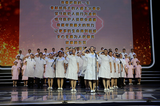 昨晚的发布仪式分为四个部分,主题分别为“爱的奉献”、“医者仁心”、“美丽心灵”、“温暖东莞”,以医护人员自编自演的歌舞,反映他们的业余爱好和精神面貌。