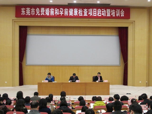 1月28日,由市妇儿工委办、市卫生计生局联合举办的东莞市免费婚前和孕前健康检查项目启动暨培训会在市行政办事中心主楼一楼会议厅召开。各镇街(园区)分管卫生、计生工作的领导,市妇儿工委办、市委宣传部、市卫生计生局、市财政局、市民政局业务科室负责人,各镇街(园区)妇儿工委办、卫生、计生行政管理部门、社会事务办(局)负责人,各婚前和孕前检查定点服务机构领导,各社区卫生服务中心(计生服务所)领导,共200多人参加了会议。