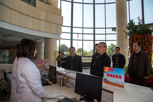 2018年2月13日下午,在新春佳节即将来临之际,市卫生计生局党组书记、局长叶向阳一行,来到市中医院慰问工作在一线的临床医技医务人员,市卫生计生局副局长、市中医院党委书记殷炯棠和党委副书记、院长叶国华陪同。