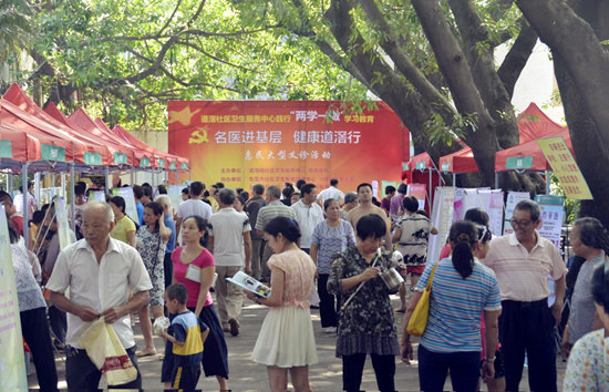 为深入开展“两学一做”学习教育,庆祝建党95周年,充分发挥医务人员的服务职能和党员模范带头作用,6月25日,道滘社区卫生服务中心联合南方医院、东莞市社区卫生服务管理中心等相关部门举办“名医进基层 健康道滘行”惠民大型义诊活动。本次活动特邀南方医院中医科、皮肤科、心内科、内分泌科、消化科、心理科等资深专家为群众观舌把脉,解疑答惑并开展诊疗服务。