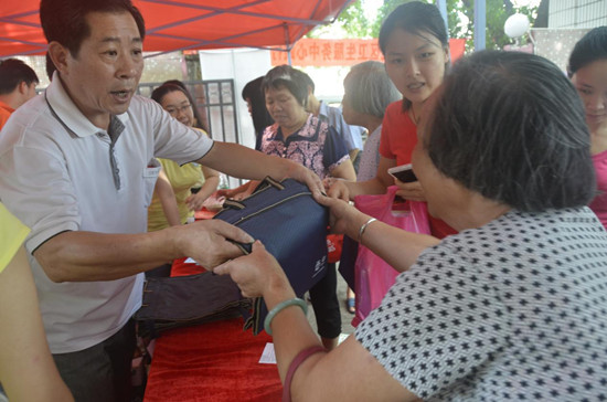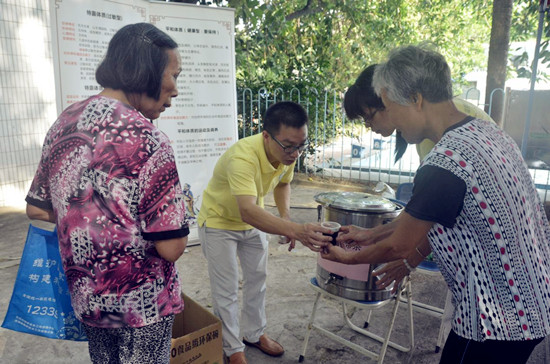 义诊现场设有血糖血压测量区、健康知识展板展示区、疾病预防凉茶赠饮区、社保咨询服务区等,在为群众提供免费医疗服务的同时,让他们享受了生活上的便利。