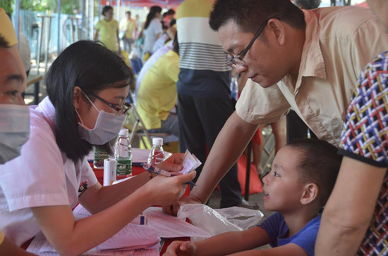“阿姨,您的血糖在正常范围内,别担心。”,“太好了,幸好有你们,我们这些老人家腿脚不方便,上医院很麻烦,非常喜欢这样的义诊,专家党员比我自己的孩子还耐心。”本次活动现场参与人数约2154人,免费测量血压509人,测血糖314人,派送健康宣传小册子12种3000份,环保袋、家庭医生药盒各100个,派赠板蓝根颗粒200包,藿香正气水600盒,预防感冒凉茶1250人次。