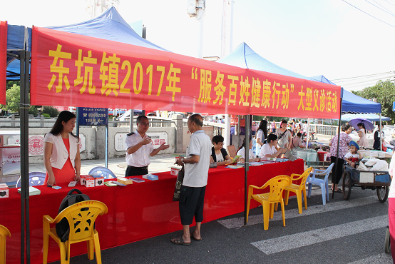 为贯彻落实全国卫生与健康大会精神,进一步树立卫生计生系统良好形象,让群众享受优质医疗服务。9月11日上午,东坑镇卫生计生局联合东坑医院、社卫中心在东坑桥头街开展“服务百姓 健康行动”大型义诊活动,现场为市民进行免费义诊及健康咨询。
