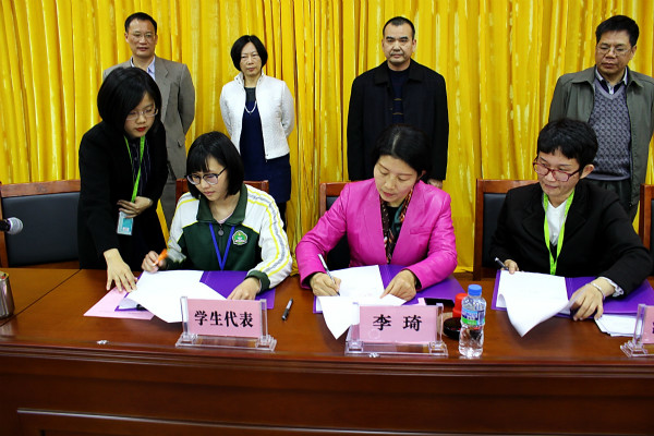 签约仪式(中:东莞卫生学校副校长李琦 右:大参林东莞分公司行政人事经理潘雪艳)