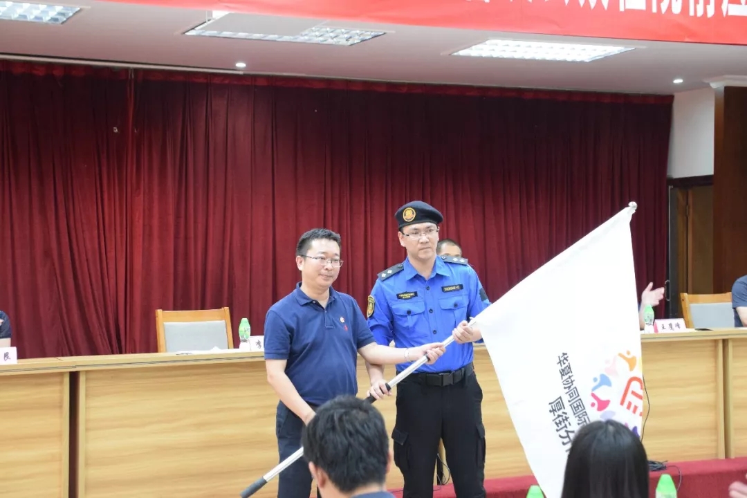 团市委书记李亚鹏分别向华夏协同国际志愿服务队厚街分队授旗和授牌