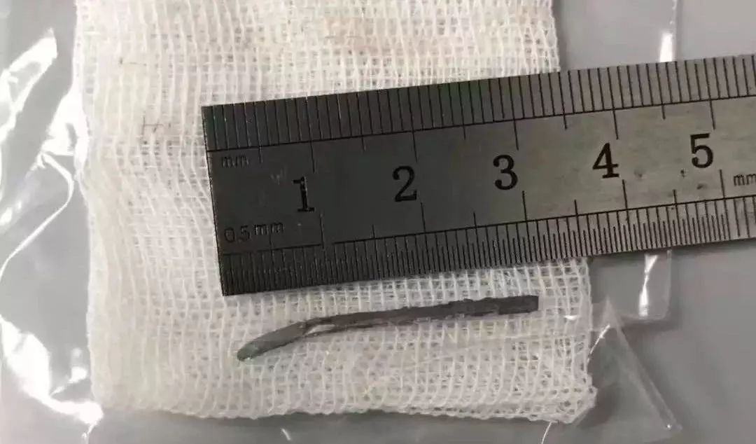 手术中,取出徐先生眼中大小长约30mm,直径为3mm的铁钉。 专家说,徐先生后续还需做二期手术,再进行一段时间抗炎治疗,才能成功保住眼球,右眼的一部分视力也有望恢复。