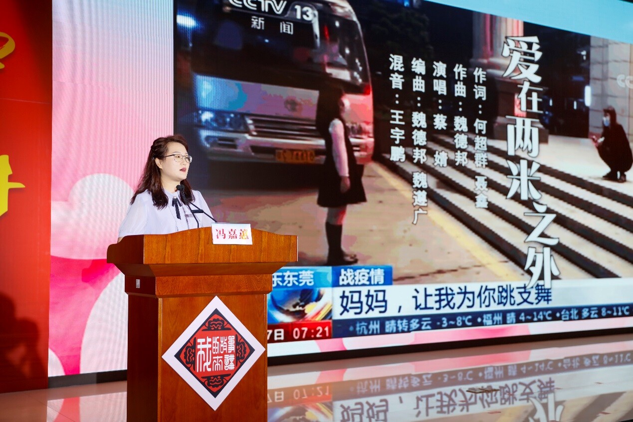 活动中播放了《爱在两米之外》MV,感动了在场的每一位观众。2月12日,正是支援东莞市第九人民医院的冯嘉蕙的生日,她的丈夫带着女儿前来看望。尽管女儿想拥抱妈妈,但是冯嘉蕙却不敢靠近。女儿忍着泪水,在两米之外为妈妈跳了一支舞,跳舞的视频被新闻媒体报道之后,感动了无数群众和无数医务工作者。