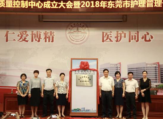 随后,成守珍主任、张亚林副局长、蔡立民院长、周柯副院长、袁伟芬科长等嘉宾领导进行了东莞市护理质量控制中心揭牌仪式。