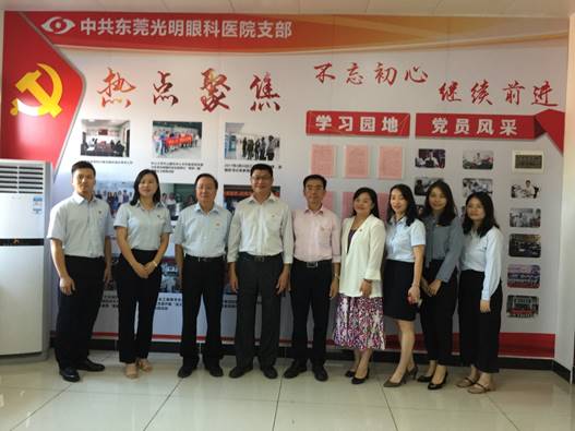 11月13日上午,调研组先到东莞光明眼科医院。东莞光明眼科医院是一家中外合资眼科专科医院。调研组走访了医院门诊部、住院部、党员活动室等。了解东莞光明眼科医院党支部构建“1+4+1”服务模式,以党员和入党积极分子为主体,打造一个党员志愿服务品牌,开展“爱心进校园,儿童青少年近视综合干预项目”“义诊进社区”“关爱进车间”“眼健康扶贫协作”等四大系列活动。2018年开始光明眼科医院就对云南省昭通市鲁甸县进行援建,成立了鲁甸东莞眼视光诊疗中心,并定期派出眼科专家到鲁甸开展对口支援,帮助解决疑难病例,进行眼科各项工作指导并进行眼科手术。调研组表示,东莞光明眼科医院的党建引领公益志愿服务打造了属于自己的品牌,为全市民营医院党建引领公益志愿服务提供有效探索与范本。