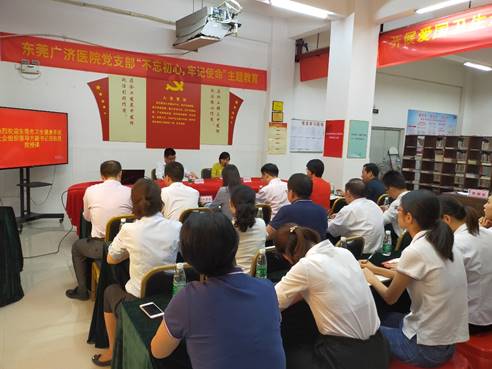 11月13日下午, 为充分发挥卫生健康系统社会组织党委对民营医院党组织开展主题教育的指导促进工作,加强党员思想教育,方厚祥专职副书记来到东莞广济医院,结合其个人在主题教育过程中的学习研讨、实地调研和检视问题等方面的心得体会向医院全体党员以《坚持以人民健康为中心,加强民营医院党建标准化建设,推进我市民营医院党建工作再上新水平》为题作主题教育专题党课报告。