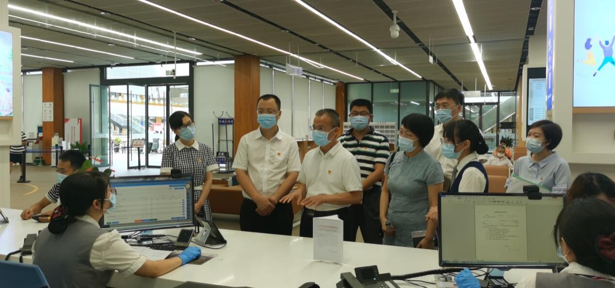 7月6日上午,在市政务服务数据管理局局长陈东成陪同下,市卫生健康局叶向阳局长在市民服务中心不动产公积金业务区、综合服务一、二区等多个区域进行走访调研,学习了不动产公积金部门的先进工作经验;详细了解市卫生健康局涉企事项流程(不见面审批服务),医师、护士执业注册收件、出证流程,窗口办事效率以及企业群众的难点痛点问题。现场工作人员给予一一解答,并演示了多类业务的办理流程。随后,叶向阳局长走访慰问进驻市民服务中心后台工作人员,听取了关于市卫生健康系统政务服务工作情况的汇报,并勉励工作人员继续保持认真、热情和严谨的工作态度,为群众提供优质高效的贴心服务。