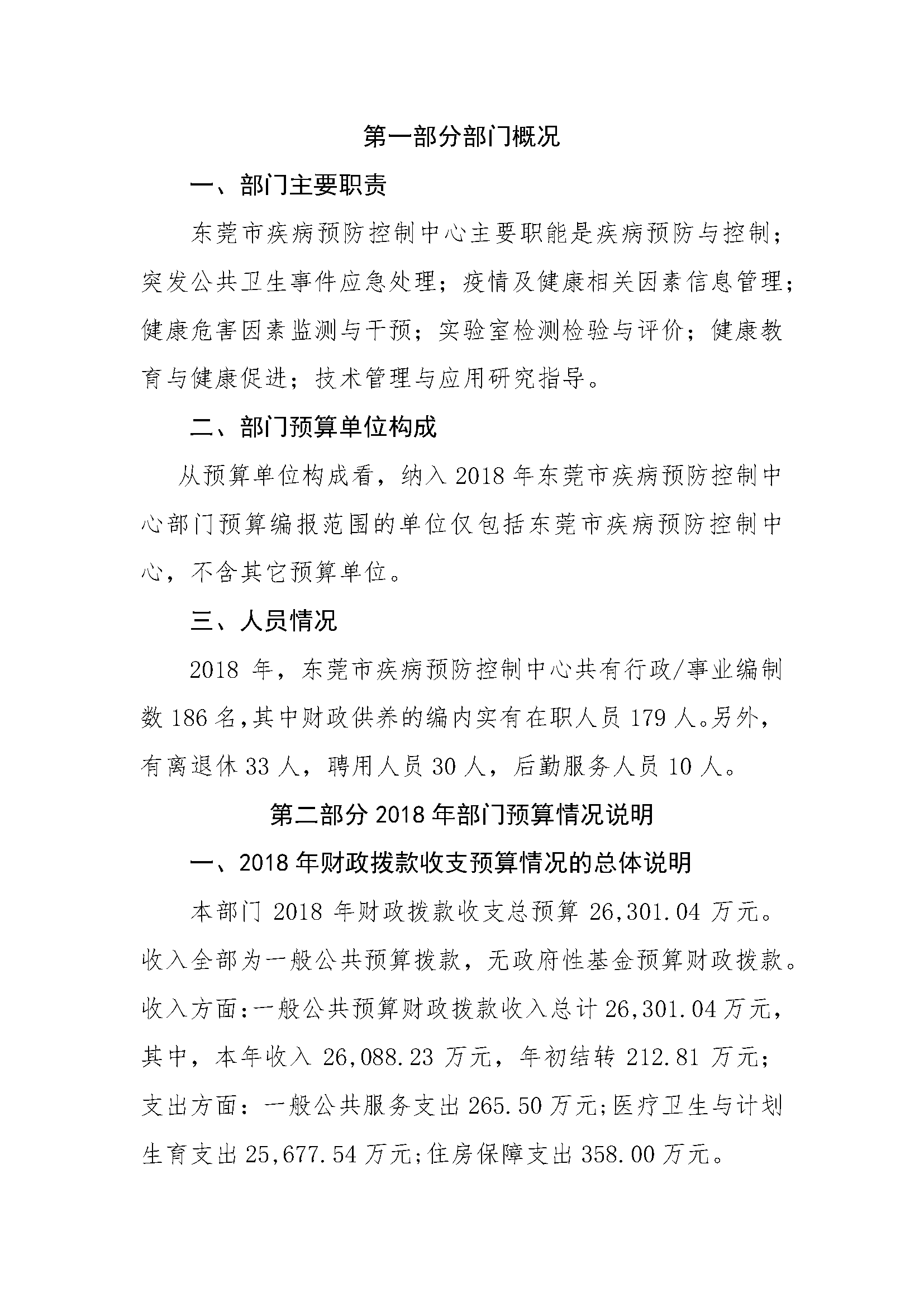 2018年东莞市疾病预防控制中心预算