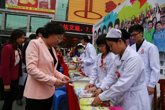 2014年12月1日是第27个“世界艾滋病日”,今年活动的主题是行动起来,向艾滋迈进,副标题为“凝聚力量,攻坚克难,控制艾滋”。为了更好地普及大众的艾滋病防治知识,当天上午,东莞市艾滋病防治领导小组在石龙镇开展预防艾滋病宣传咨询活动,喻丽君副市长在宣传活动上致辞,详细巡查了宣传活动现场,并慰问工作人员。本次活动由石龙镇艾滋病防治领导小组承办,广东医学院、渔夫生命辅导中心等艾滋病防治新生力量也参与了本次宣传活动。