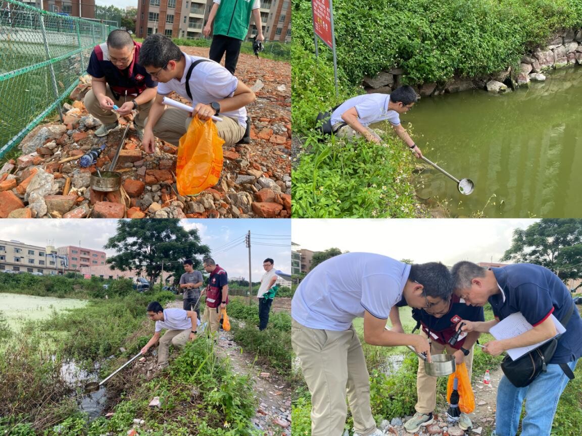 5月25日,工作人员走入村庄,查看野外环境和适宜按蚊生长繁殖的孳生地,沿着池塘、水坑、水渠等水体岸边选择采样点,用水勺在水体边缘或有水草缓流处进行采样,收