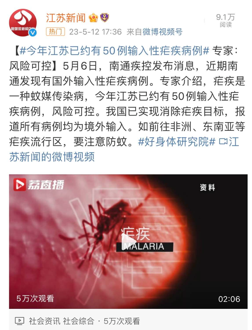 据报道,今年江苏已约有50例输入性疟疾病例,所有病例均为境外输入,这些患病人员主要以赴非洲务工人员为主。此前南通市疾控中心曾发布提醒,疟疾如不能及时诊治,或危及生命,提醒市民需做好防蚊灭蚊减少蚊媒疾病发生的准备。