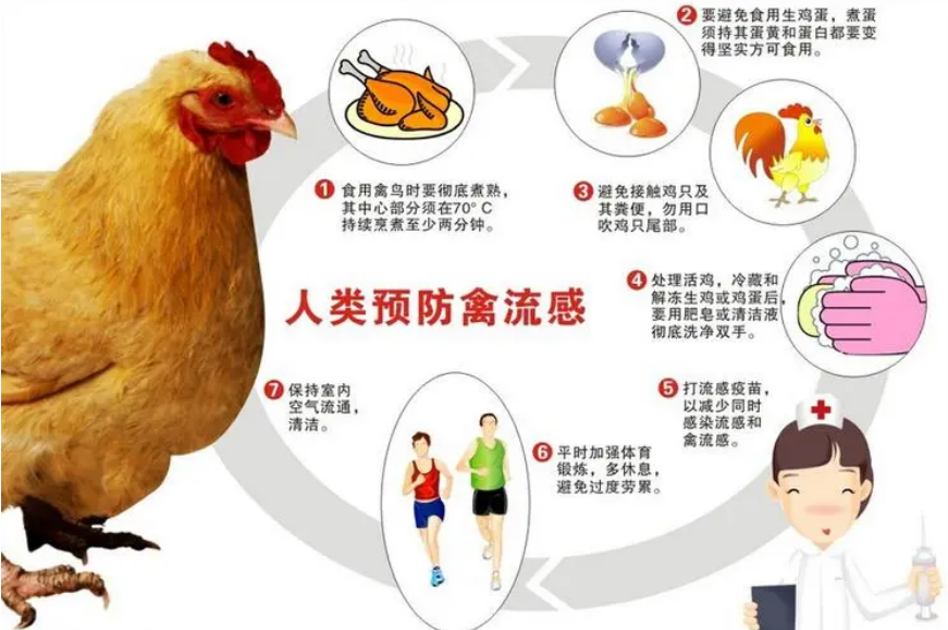 根据联合国粮食及农业组织(粮农组织)和世界卫生组织(世卫组织)向国际食品安全当局发表的一项联合声明,如果妥善煮熟,鸡和其它家禽可安全食用。但是,患病禽鸟不应进入食物链。