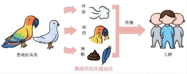 鸟类为主,包括鹦鹉、长尾鹦鹉、相思鸟、金丝雀、鸽子、海鸥等其他鸟类也可成为传染源。