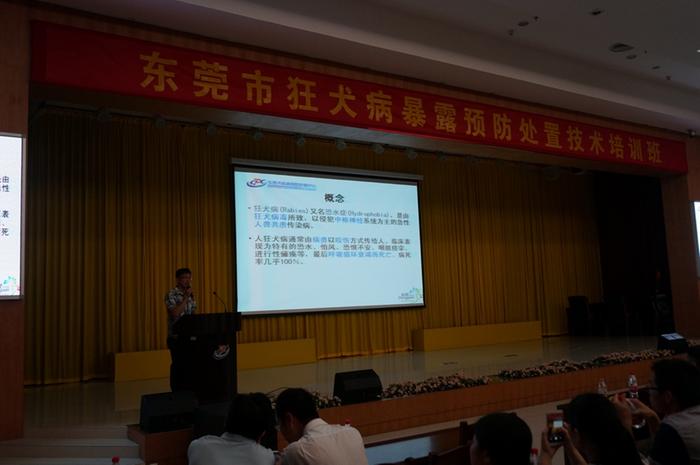 狂犬病是由狂犬病毒引起的人兽共患疾病,病死率达100%。为进一步规范我市狂犬病暴露预防处置工作,提高处置水平,切实保障广大群众的身体健康和生命安全,受市卫生和计划生育局委托,5月12日市疾病预防控制中心举办了“东莞市狂犬病暴露预防处置技术培训班”。全市49家医疗卫生单位从事狂犬病暴露预防处置的专业技术人员共260余人参加了培训。