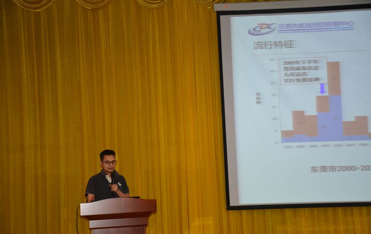 图5市疾控中心传染病预防控制所陈文峰主管医师在培训班上授课