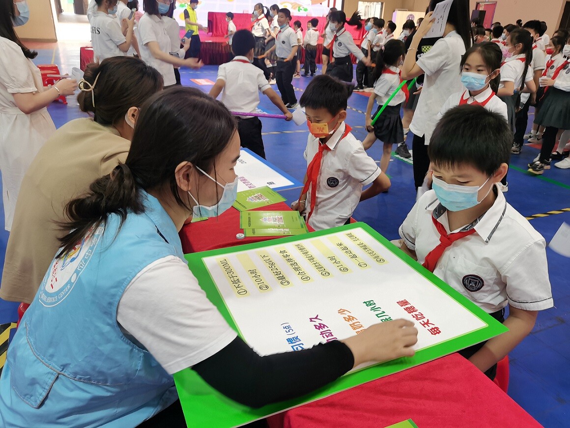 活动分为线上及线下的形式开展。线上活动主要以家庭为单位,鼓励学生与家长共同学习膳食营养知识后进行知识问答,通过亲子互动参与的模式,以达到对膳食营养知识的教育及普及。线下活动以“课堂宣讲+摊位宣教”的方式开展,其中课堂宣讲由市疾控中心公卫所黎虎副所长和张梦娇医生以PPT宣讲、派发宣传折页及有奖问答的形式向学生普及营养健康知识;摊位宣教则设置成“知识连连碰+玩转跳动”的互动参与形式,将膳食营养知识及合理运动融入到游戏的体验中,从而促进儿童青少年对吃动平衡重要性的理解。本次活动直接参与学生近600名,间接参与的学生及家长达1800多人次,部分学生表示参与活动能够调动学习营养知识的兴趣,同时还能让其对膳食营养有更多的认识。
