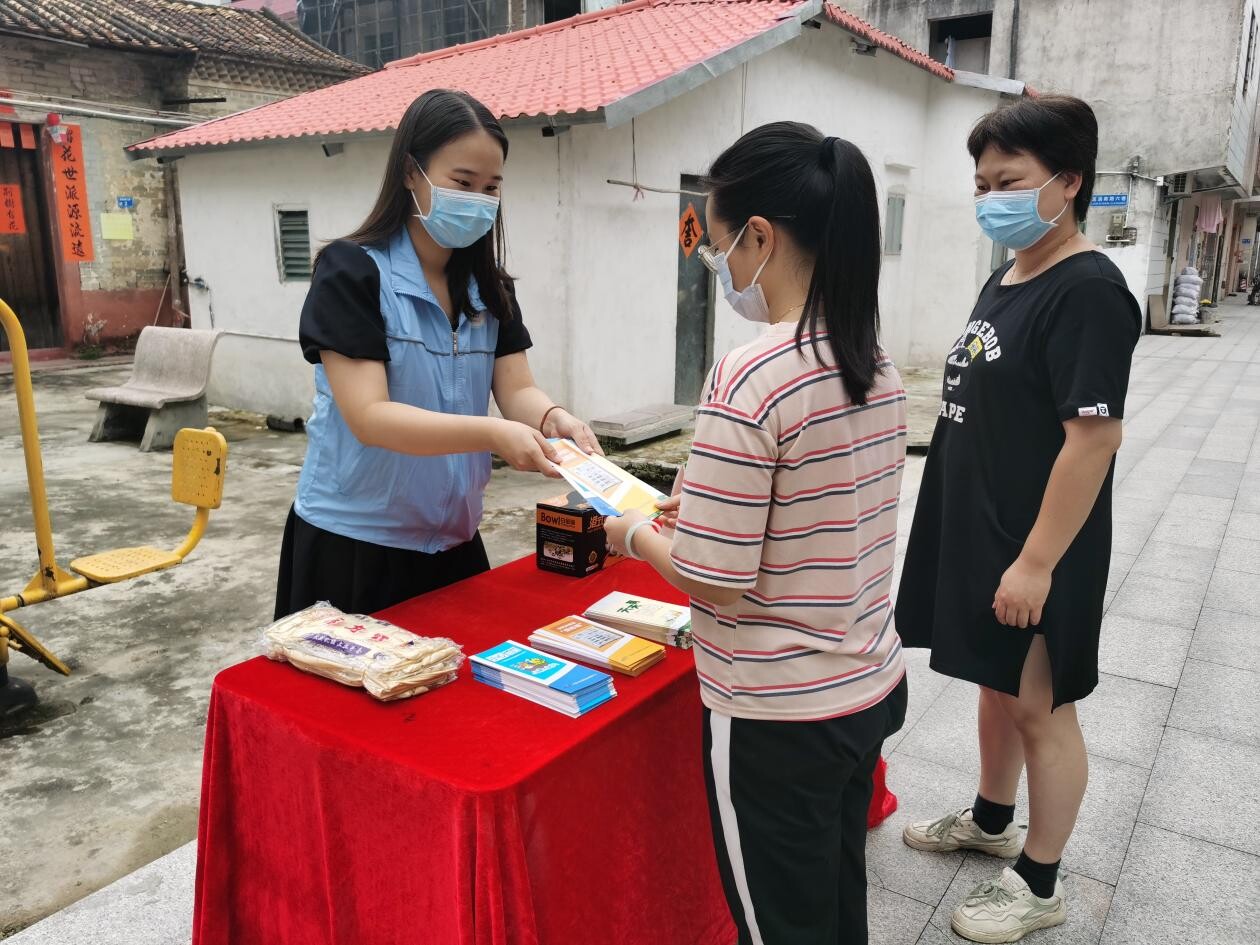 图二:社工在万江大莲塘社区派发宣传单