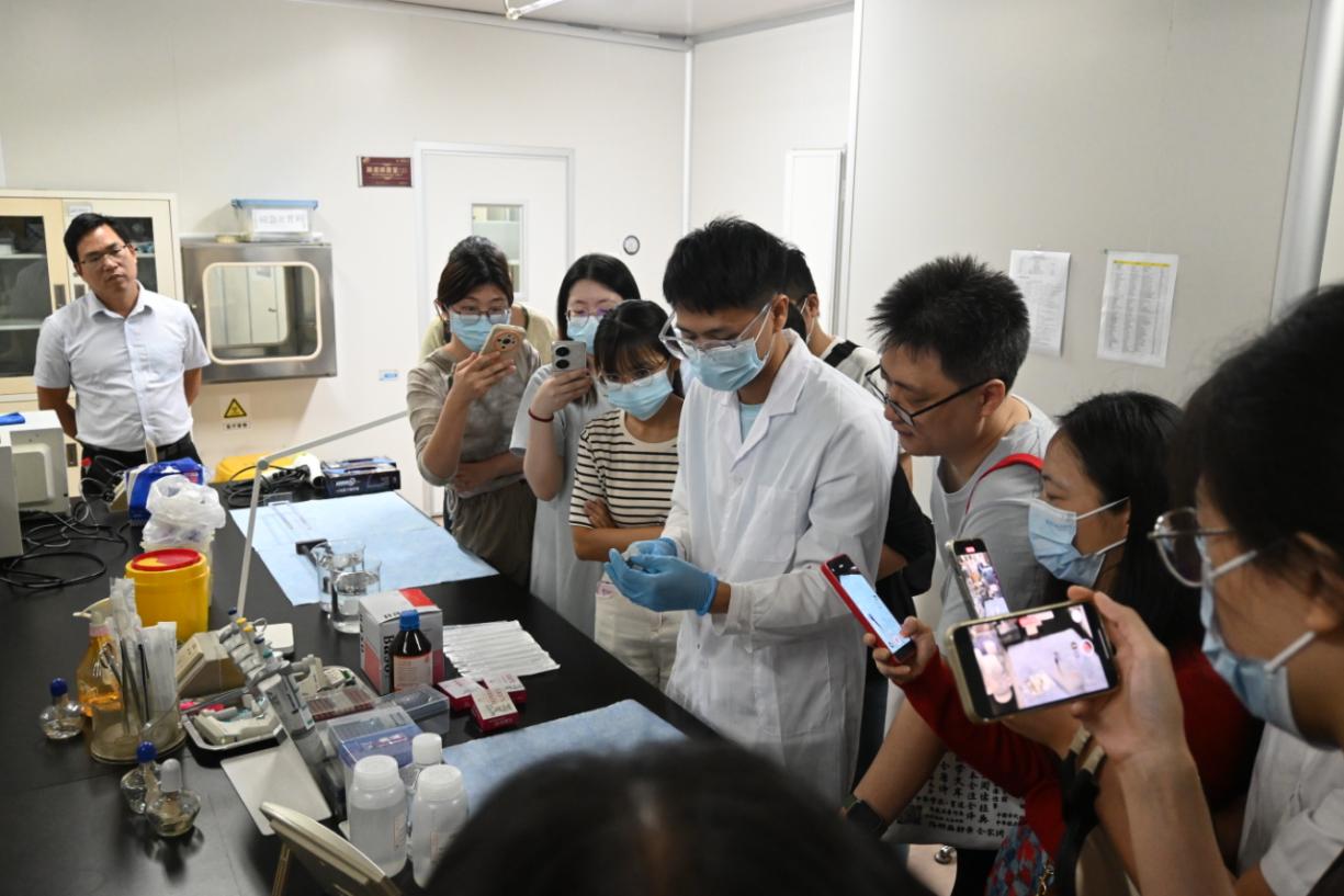 图3市疾控中心微检所何颖欣主管技师讲解疟疾检测技术