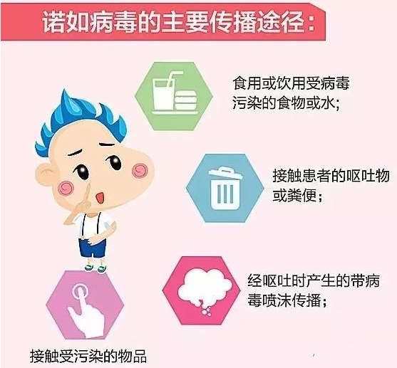 诺如病毒是一种肠道病毒,感染后容易导致急性肠胃炎。诺如病毒的传播途径主要有三种:人与人之间的接触感染,食源性传染和水源性传染。其中人与人之间的接触传染主要可以通过粪口途径、吸入或摄入混有病毒颗粒的气溶胶、间接暴露于污染物或接触其表面,是大部分诺如病毒暴发流行的主要传播途径。其次,食源性传染是指以受污染的食物为病毒载体,从而导致人群感染。水源性传播是以水为病毒载体,若水源被污染,容易造成暴发流行。
