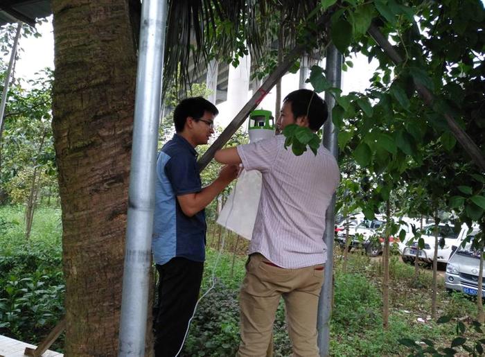 图2 疾控志愿者现场设置疟疾媒介调查设备情况