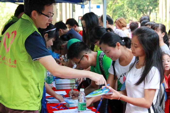 本次志愿活动的服务对象是自愿现场报名参加徒步活动的群众。活动的起始点和终点均设在虎英公园北门处,中间设置3个中继站,设立知识问答等小游戏以及为群众贴“公里标”。志愿者在10月15日早上8点到达虎英公园北门,进行现场报名、派发活动物品、宣传册、义诊等工作。