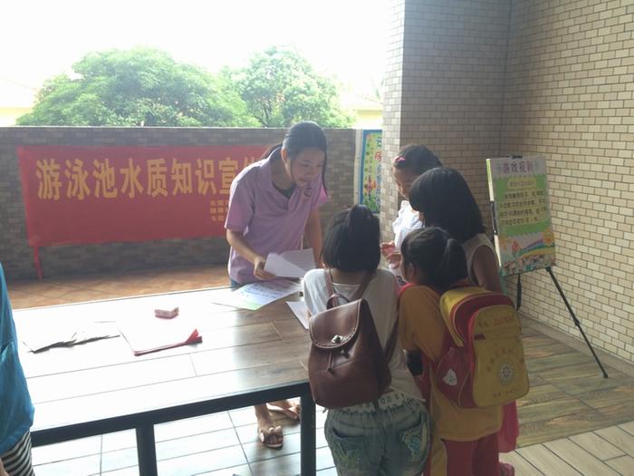 8月9日,我中心公卫所志愿者服务队2名成员到东城中心开展泳池水知识宣传活动。活动主题围绕游泳池水质卫生预防知识宣传,旨在提高群众游泳安全卫生知识,预防各种健康危害。此次便民活动共接待群众共约100人次,发宣传资料120多份,制作横幅1条,设立宣传栏4个。本次活动结合日常工作为群众提供了专业的游泳安全知识和便民利民服务,增加广大群众对游泳安全卫生知识的了解,保障人民群众生命安全。
