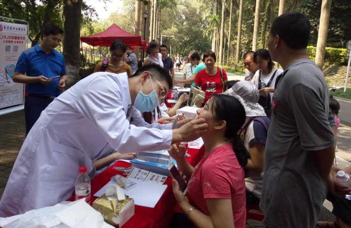本次活动由东莞市卫生和计划生育局主办,东莞市儿童口腔疾病综合干预项目办公室、东莞市口腔医学会、东城街道卫生和计划生育局、东城社区卫生服务中心、东城医院等单位承办。我中心志愿者服务队和东莞市口腔医学会等承办单位的有关专业人员组成现场工作队伍。虎英公园环境优美,绿树成荫,前来晨练、游玩的市民络绎不绝。我中心志愿者向前来虎英公园活动的市民宣传了口腔卫生知识、儿童口腔疾病防治知识、儿童口腔疾病综合干预服务信息,以及口腔健康检查、窝沟封闭、局部用氟等措施的作用和好处,东莞市口腔医学会的口腔专家为市民提供口腔健康检查和口腔保健咨询活动,东城医院医生为市民提供骨密度、血压、血糖等检测和健康咨询。活动当天吸引了众多市民前来咨询和检查。