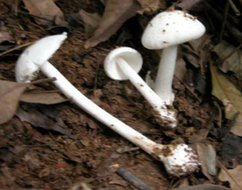 在广东地区,导致中毒人数最多的两种蘑菇分别是白毒伞(致命鹅膏)和铅绿褶菇,其中白毒伞又是毒性最强的。白毒伞,又名致命鹅膏,最大的特征就是头上戴帽(菌盖),腰间系裙(菌环),脚上穿靴(菌托);白毒伞的白色菌体幼时卵形,后菌盖展开成伞状。