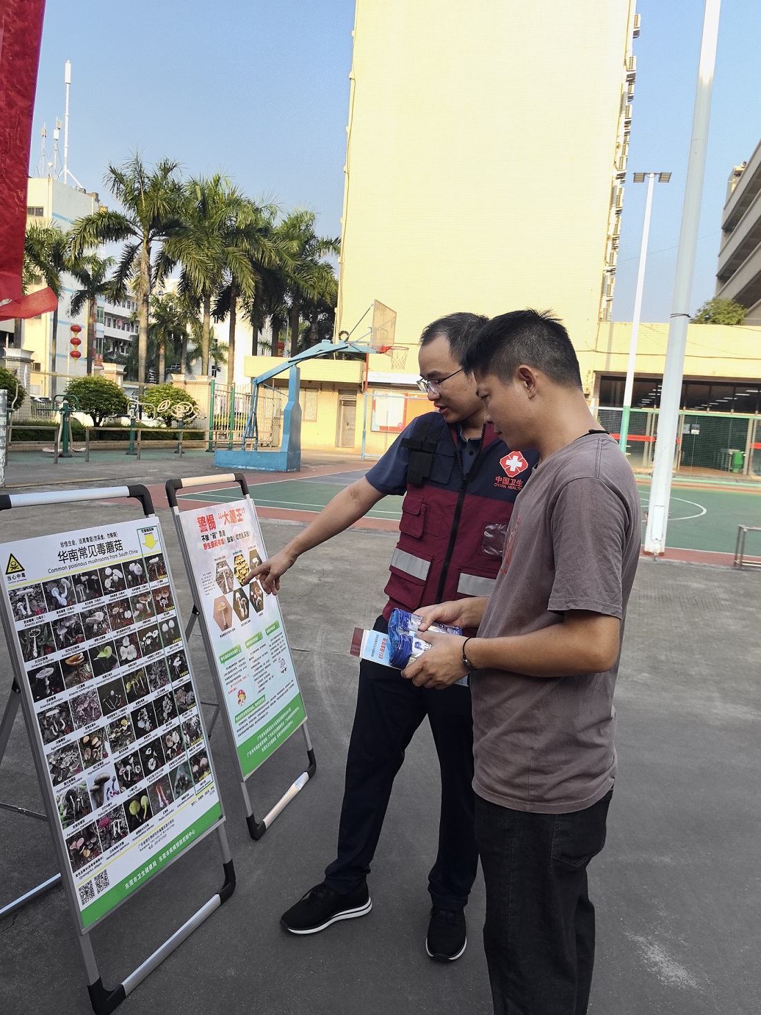 活动开始前,我中心工作人员提前到达工厂集合,有序签到,统一着装,布置活动现场。现场设置了展示区和宣传单发放区,分别展示了野生蘑菇的种类、识别方法以及中毒后的应急处置措施等知识。同时,工作人员还安排了有奖问答环节,通过趣味性的互动方式,让外来务工人员在轻松愉快的氛围中学习到预防野生蘑菇中毒的相关知识。此外,我中心工作人员还通过展示牌和宣传单向外来务工人员详细介绍了野生蘑菇的种类、中毒后的应急处置措施,反复强调不要随意采摘、购买和食用野生蘑菇。