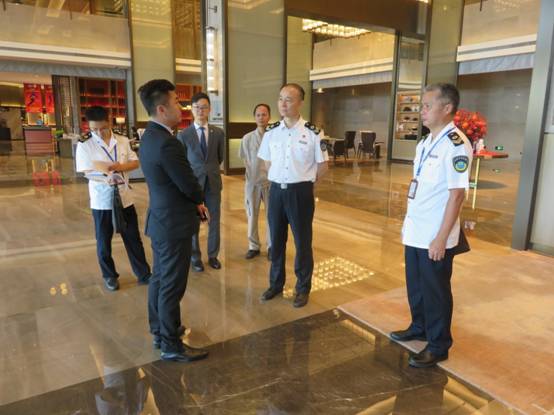 在对接待酒店保障检查中,检查人员一行突出重点环节,严格按照法律法规要求,对照相关卫生法规、规范,对接待酒店卫生管理制度建设及卫生措施落实情况进行细致查阅,着重检查了被监督单位的功能间卫生管理、公共用品洗消保洁、生活饮用水卫生管理及集中空调通风系统日常卫生管理等方面工作,聚焦风险环节,查摆可能存在的卫生管理漏洞。结合现场检查情况,卫生执法人员针对发现的问题,进行详细记录,现场提出监督意见,督促活动场馆及接待酒店加强自查自纠,配合化解卫生管理风险点,严格按照《广东省重大活动卫生保障暂行办法》等有关规定认真落实好该次接待保障工作。