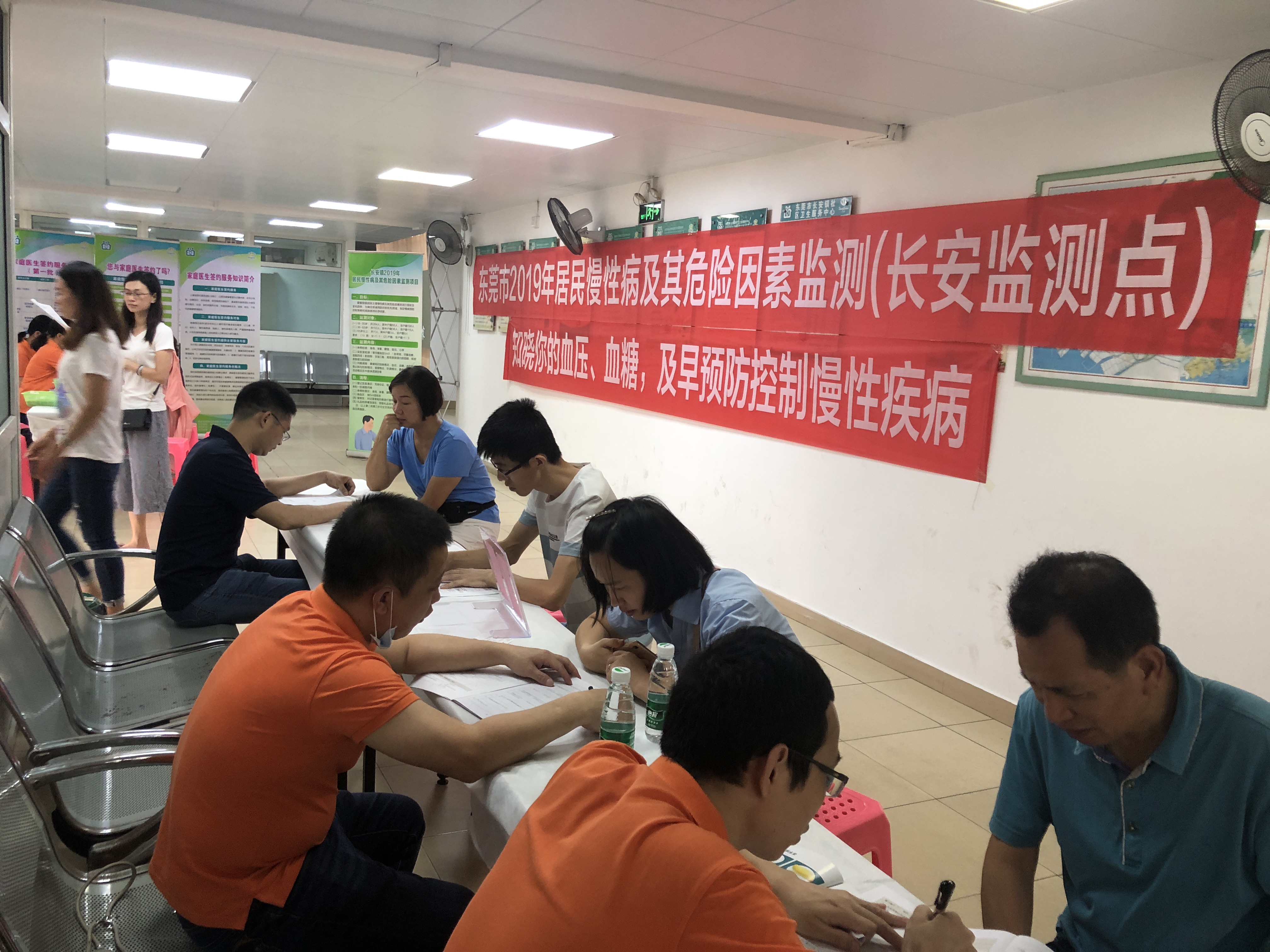 为进一步贯彻落实《中国慢性病防治中长期规划(2016—2025年)》,响应《预防控制非传染性疾病全球行动计划(2013—2020年)》要求,建立我市居民慢性病及其危险因素监测体系,市疾病预防控制中心2019年继续开展全市居民慢性病及其危险因素监测工作,本年度选取长安镇、麻涌镇和松山湖作为监测点。各监测点于2019年5—7月陆续完成对辖区内的村(社区)、企业等18岁以上常住居民代表的慢性病患病情况及其危险因素监测工作,监测项目包括体格检查、样品采集、问卷调查等。