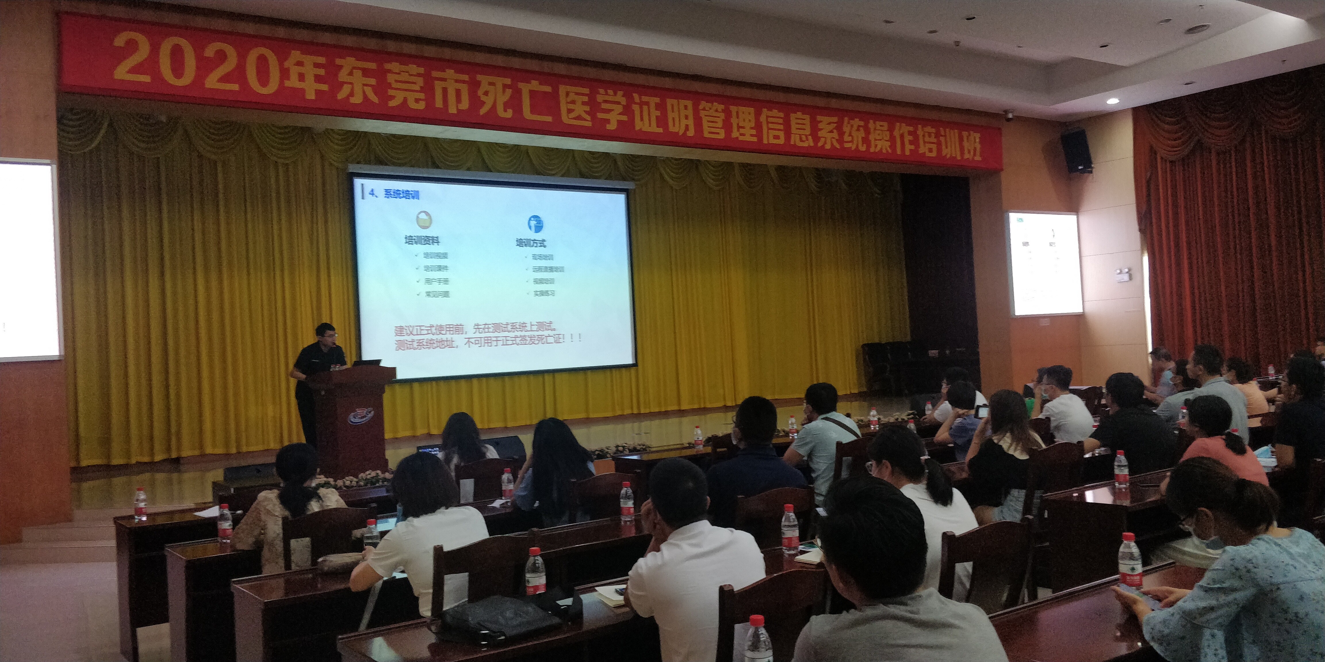 根据省卫健委部署,我市将于2020年9月1日正式启用广东省死亡医学证明管理信息系统,并同步启用新版本的《居民死亡医学证明(推断)书》。为保障我市顺利启用新系统、做好新旧证明交接等工作,市疾病预防控制中心于8月11日举办了东莞市死亡医学证明管理信息系统操作培训班。参加本次培训班的有各市属医院、镇街医院、综合性民营医院以及各社区卫生服务中心的死因报告管理技术骨干约150人。