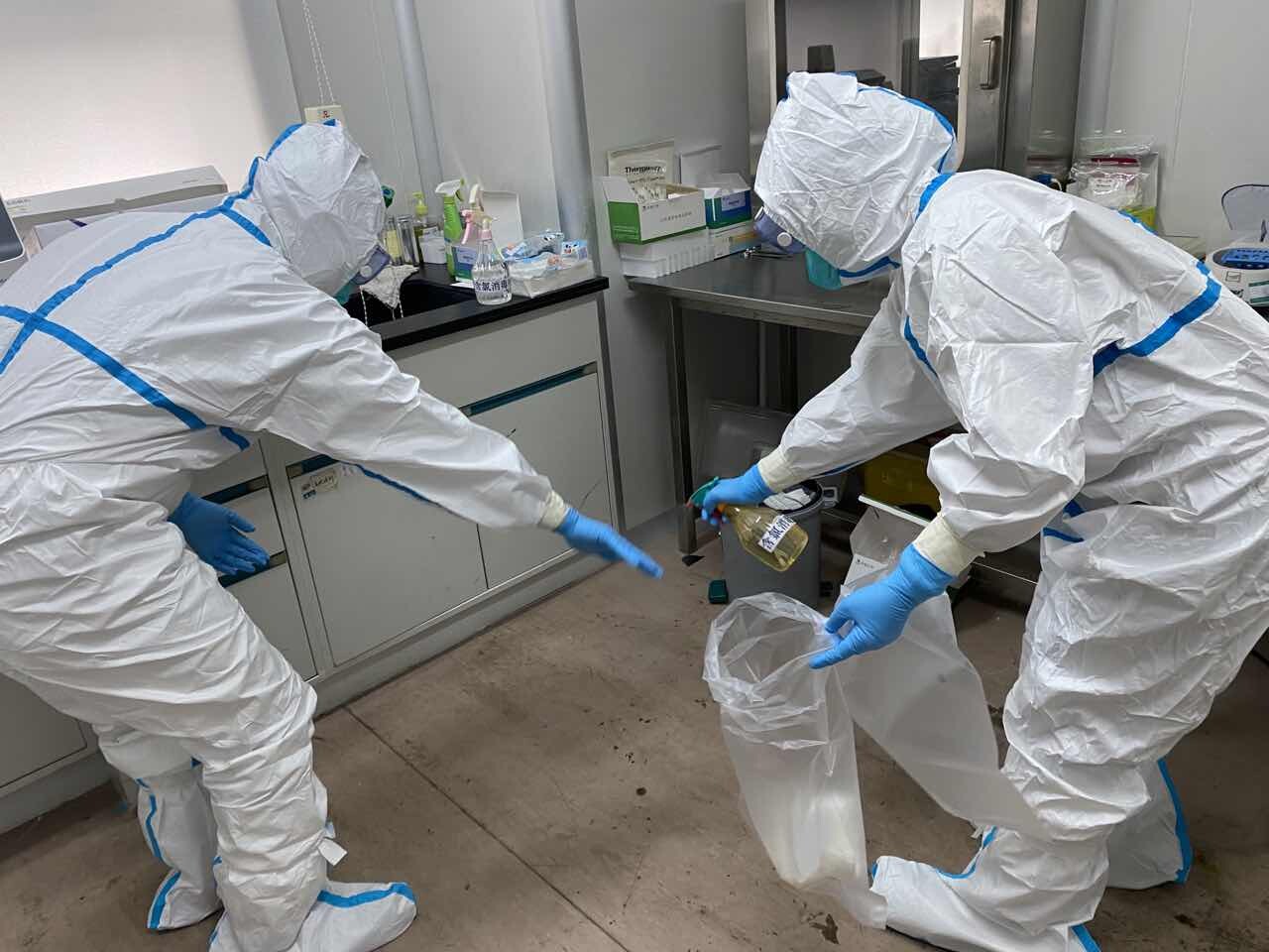 本次微检所生物安全知识学习采取自行学习方式,各成员自行观看学习生物安全相关视频《个人防护穿脱视频》,回顾个人防护穿脱的每一个细节。学习结束后,全体技术人员现场进行生物安全防护服穿脱训练,并对新进人员及以往未参与该项目训练的技术人员进行重点培训。