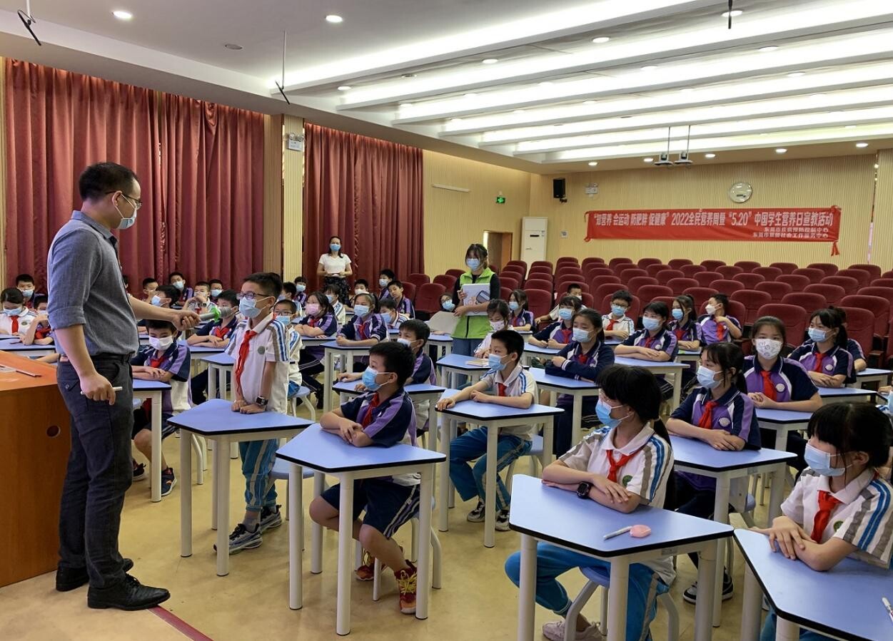 今年5月15日—21日是中国第8届全民营养周,5月20日是第33届“5·20”中国学生营养日。为提高学生群体健康水平和素养,我市于5月19日和20日发分别开展了两期“知营养 会运动 防肥胖 促健康”2022年东莞市全民营养周暨“5·20”学生营养日进校园宣教活动。此次活动由市卫生健康局、市教育局、市疾病预防控制中心作为主办单位,厚街镇卫生健康局、厚街镇教育管理中心、厚街镇社区卫生服务中心作为承办单位,厚街镇丰泰外国语学校、厚街镇中心小学作为协办单位共同参与举办。