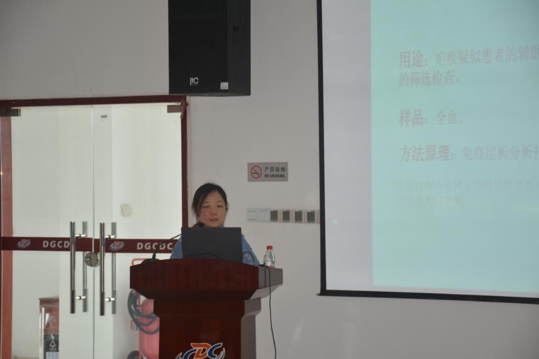 图3市疾控中心检验所杨丽主管技师在培训班上授课